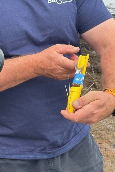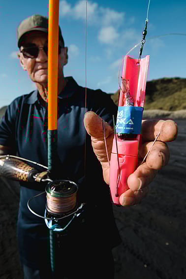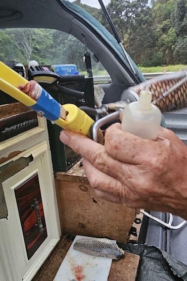 Place the bait into the tail section as near to the burley oil cavity as possible then wrap the tape around the bait and the tail section until you meet the other end of the tape.
